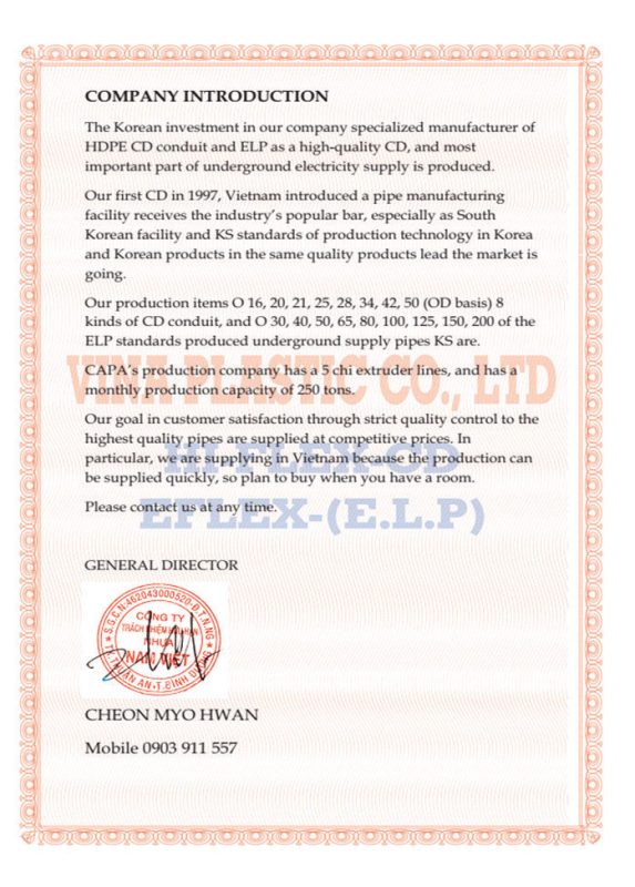 Pa Sang Hyeong giới thiệu máy sản xuất ống dẫn polyetylen cứng. (Ống Korean CD, tiêu chuẩn K.S)