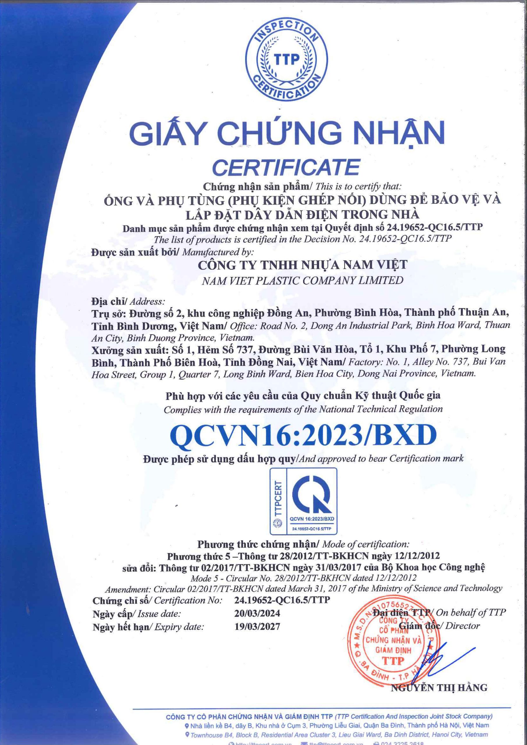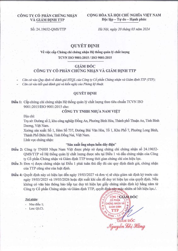Giấy phép đầu tư Hàn Quốc – Việt Nam được cấp theo sự thay đổi. Công ty TNHH NAM VIỆT (Vina Plastic Co., Ltd) được thành lập